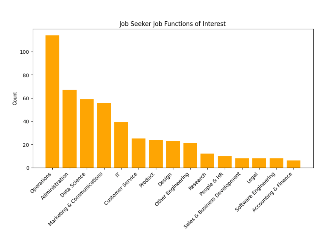 More than half our candidates are actively seeking new roles, while 34% are open to the right opportunity. Most candidates in FireUp’s Talent Network are looking for roles in Operations, including field operations, Administration, Data Science, Marketing and communications, IT, Customer service, Product, Design, see below graphs for more on interest in job functions and employer types.